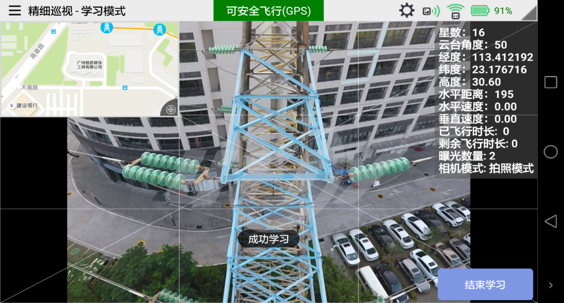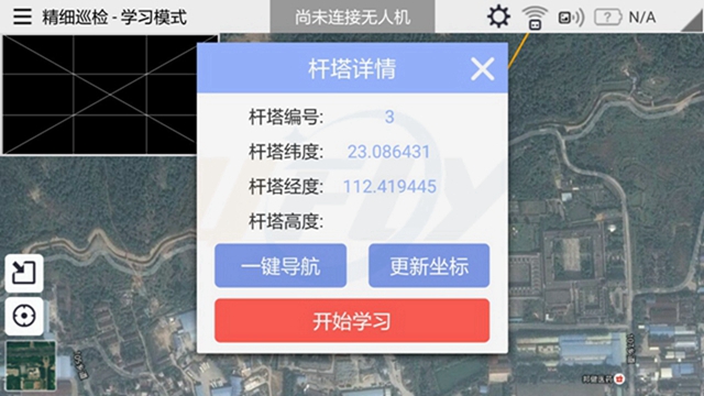 杆塔精细化巡检模块上的学习模式可以按照不同塔型记录和存储无人机的飞行轨迹和拍摄位置。所记录的飞行信息将作为下次飞行依据在自动化巡检模式中使用,实现无人机的自动精细化巡检,降低对巡视人员的无人机操控素质的要求,大大降低了巡视成本,提升了杆塔巡检的效率,保证了电网巡视作业的安全。
